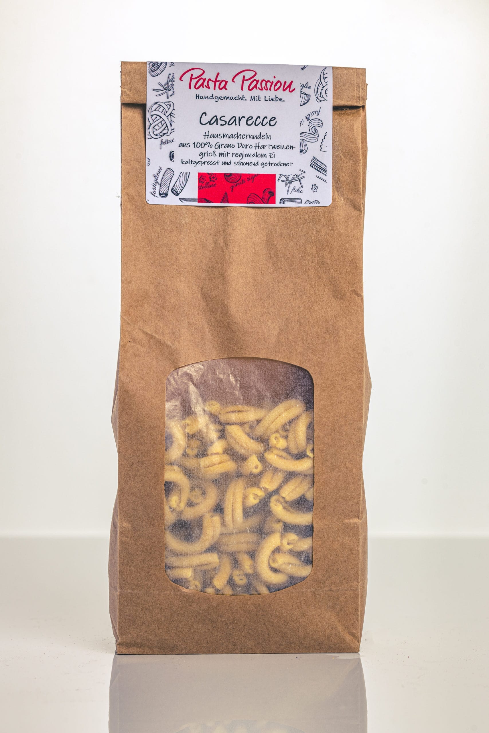 Hausmachernudeln, gedreht, mit Ei aus 100% Grano Duro Hartweizengrieß, kaltgepresst und schonend getrocknet.Für kräftige Saucen und Ragouts.
