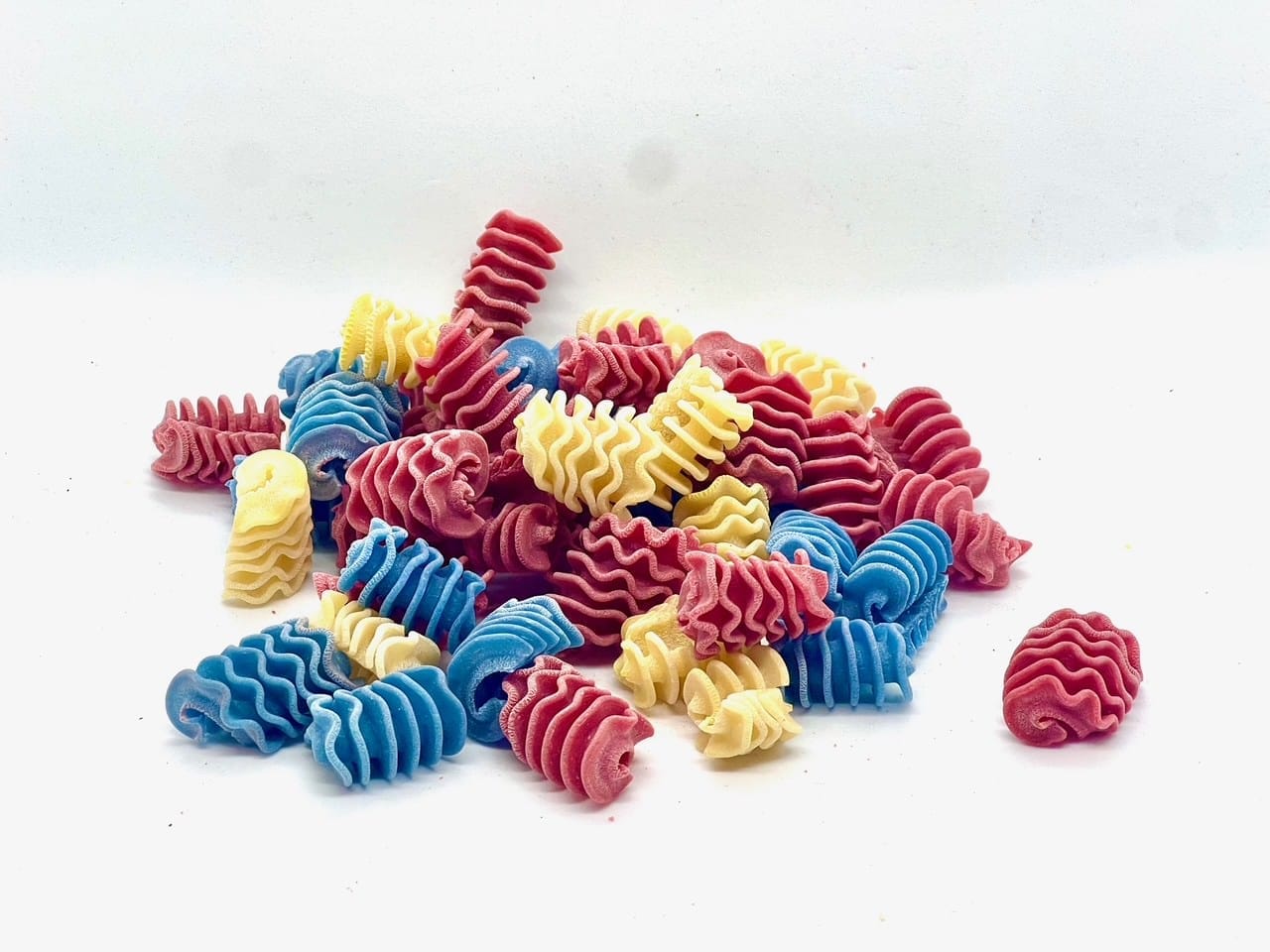 Hausgemachte gewellte Nudeln aus 100% Grano Duro Hartweizengrieß, mit blauer Spirulina-Alge (blau) oder Roter Beete Pulver (rot) gefärbt, kaltgepresst und schonend getrocknet. Diese Nudeln haben wir zwar zur Fußballeuropameisterschaft 2024 “erfunden”, sie sind aber so spektakulär auf dem Teller (am besten zu hellen Saucen), dass wir sie ins Dauersortiment übernommen haben.
