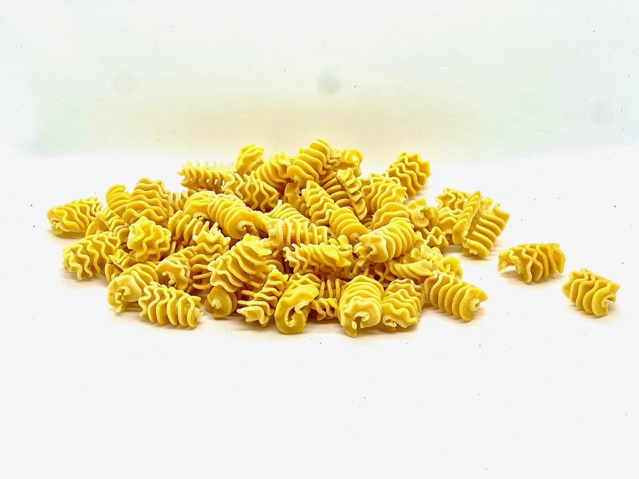 Hausgemachte gewellte Nudeln mit Ei aus 100% Grano Duro Hartweizengries, kaltgepresst und schonend getrocknet.